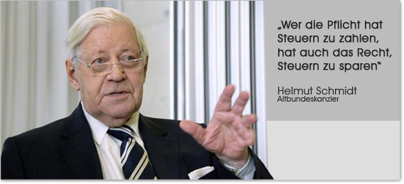 Helmut Schmidt hat es treffend formuliert. Nutzen auch Sie „Ihr Recht“ und sparen Sie unnötige Steuer-abgaben. In einem persönlichen Gespräch erläutern wir Ihnen, wie Sie Ihr Geld nachhaltig vor Inflation schützen und dabei lukrativ anlegen. mehr Infos...
