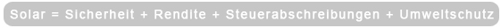 Durch diese Kombination bietet die Photovoltaikanlage gerade für Kapitalanleger eine sehr hohe Planungs- und Investitionssicherheit. Wenn Sie mehr wissen wollen, sprechen Sie uns an: